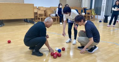 社務所のなかでは、「昔遊び」ではありませんが、砧町町会イチ押しのどなたでも気軽に遊べるスポーツ、「ボッチャ」を行いました☺