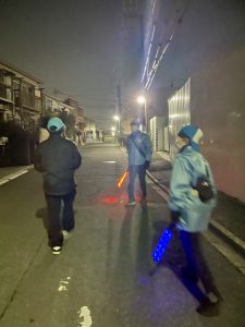 私はいつも、夜回りする役員の姿をスマホで撮影しながら歩くのですが、実はこの日、夜回りの途中でスマホを紛失してしまったのです😢