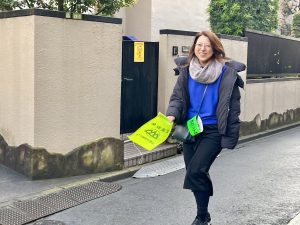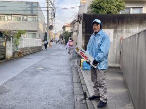 今朝の登校時に、いつも通学路で子どもたちの安全を守ってくれている砧町町会「あいさつプロジェクト」の協力者の皆様に会いに行きました🚲
