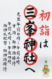 三峯神社では新年を迎えるときに御神酒や甘酒の接待がございます。