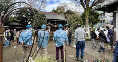 午前8時30分には、砧町町会の水色ウインドブレーカーがぞくぞくと三峰公園に参集。