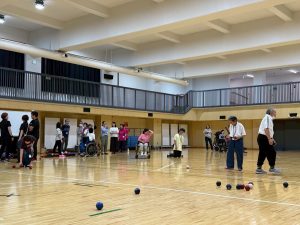 希望丘地域体育館では、日本ボッチャ協会の方々が指導してくださる「第4週」の「世田谷deボッチャ」が行われました。