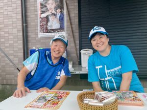 幕舎では、道行く人に「おはようございます!」「気を付けて!」「いってらっしゃい!」と声をかけます。