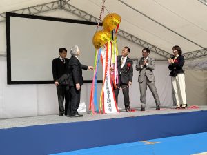 恒例のくす玉割り、今年は上手くいくかな??
