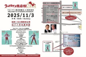 2025年11月3日(月・祝)祖師ヶ谷大蔵駅前広場にて「ウルトラマン商店街誕生20周年記念式典」が執り行われました。