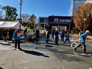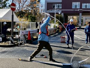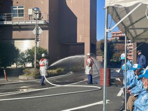 これは、毎年、砧総合支所地域振興課が成城消防署と成城消防団の協力で行っているもので、区民の防災力の向上を目的としたものです。