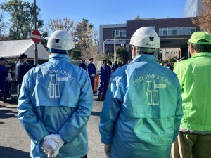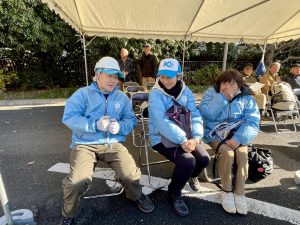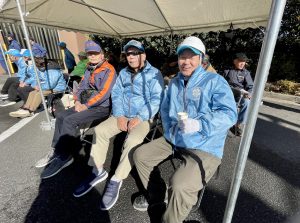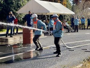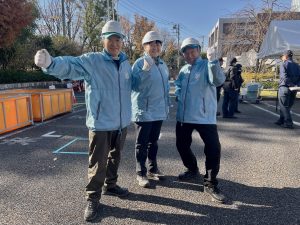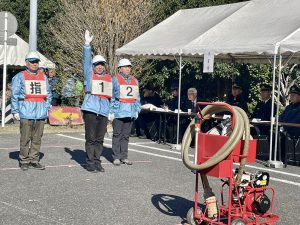 砧町町会消火隊の3名の選手たちは、11月半ばから、2回の机上練習、3回の屋外練習を頑張り、当日を迎えることができました。