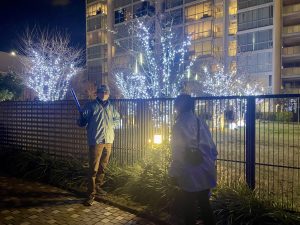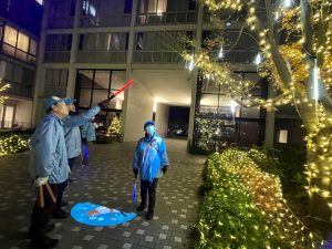 私たちが唱和する「火の用心」の声は、とにかく大きいので、おうちのカーテンを開けたり窓を開けたりして顔を出してくださる方もいて、楽しみながら約1時間の夜回りを終えました。
