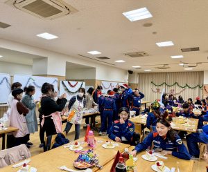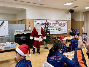 成城消防少年団の「防災クリスマス会」は、まず体育館で「ボッチャ大会」を行い、そのあと多目的室にて「クリスマス会」を開催しました。