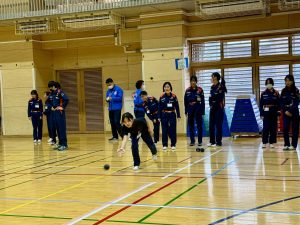 12月21日(日)には、山野小学校の施設をお借りして、午前は、長島会長が団長をつとめる成城消防少年団の「防災クリスマス会~ボッチャ大会」が、午後は砧町町会の「12月のボッチャ練習会」が行われました。