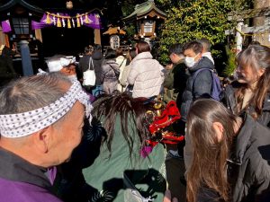突如として始まった「獅子舞」に、盛り上がる境内⤴