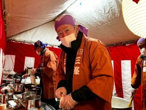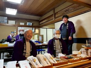 講中・世話人および神輿会の方々は、お札・お守りの授与、御神酒と甘酒の接待等で大活躍💪