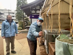 お正月飾りをおさめる役員が、ちゃんとお賽銭を入れるかどうか確認をしました(笑)