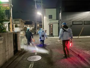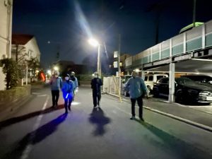 しかし、午後8時前には、砧町町会事務所にぞくぞくと役員たちが集まってきて、総勢6名で元気に夜の砧町に繰り出しました✌