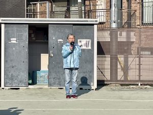 この大会では、開会の挨拶や表彰式のプレゼンターを、砧町町会の会長・副会長がつとめます。